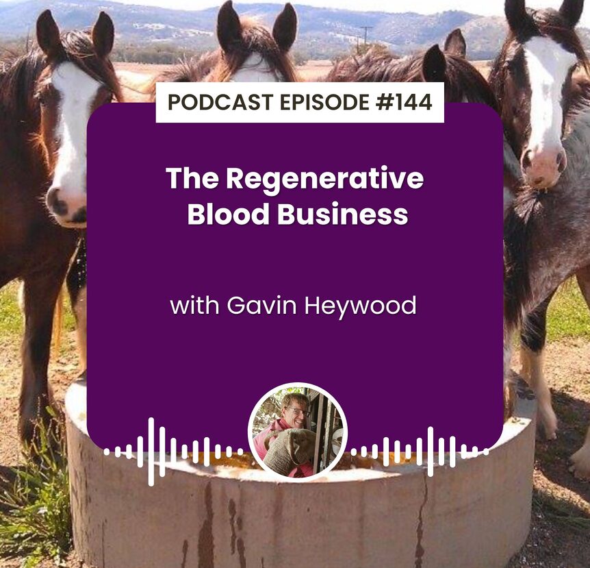 Gavin’s journey into the blood industry began with his background in laboratory work and an early attempt to sell goat serum, which led to his discovery of a larger market for horse blood. Alongside his business, he is committed to regenerative agriculture, using time-controlled grazing to restore degraded farmland, increase biodiversity, and improve soil health.