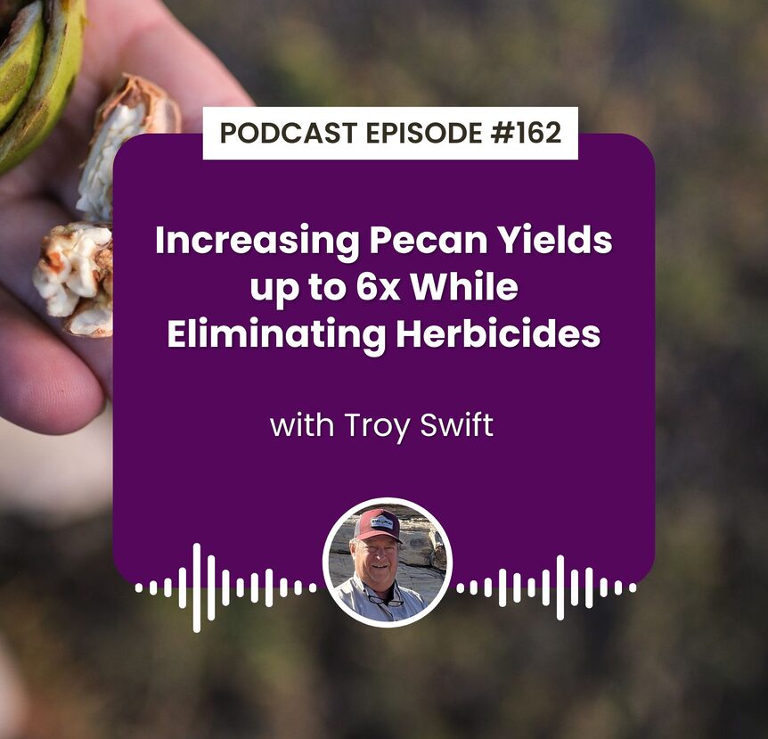 Troy Swift started farming at age 42, and has achieved incredible results using regenerative practices in his Texas pecan grove: increasing yields in certain varieties by up to 6X, while cutting nitrogen inputs by 97%, reducing insecticides, and eliminating herbicides.