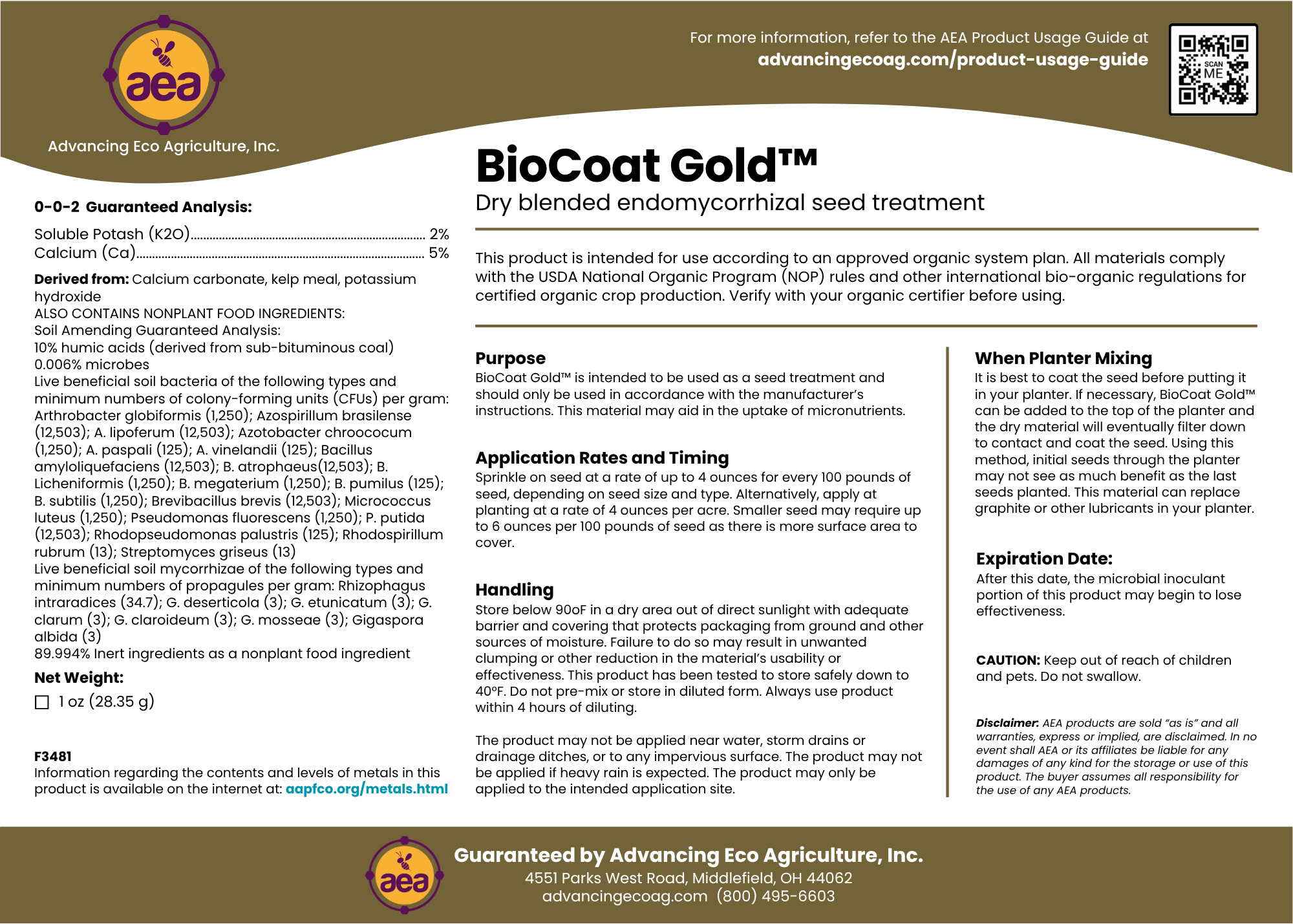 BioCoat Gold™ is a dry blend of seaweed, calcium, humic substances, and microbial inoculants.