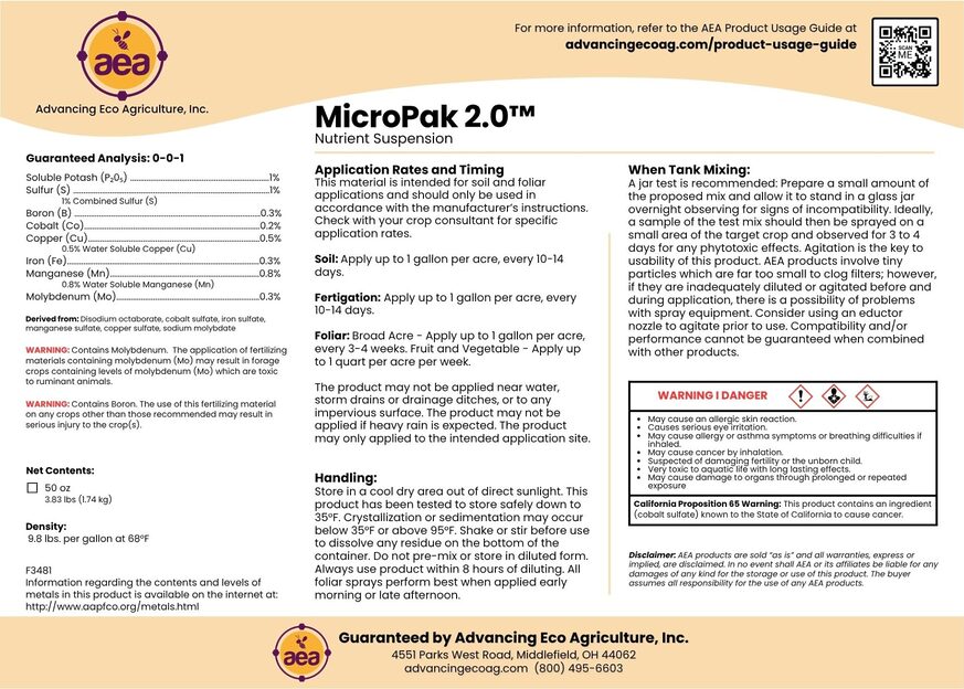 *** PREORDER. Products will be shipped when available. *** MicroPak contains a blend of trace minerals that are critical to growing healthy plants. Trace minerals encourage the development of larger and stronger root systems, increase nitrogen fixation and nitrogen use efficiency, enhance sugar transportation, and greatly improve vigor and quality in the buds, blossoms and fruit. This product is not yet available in California.